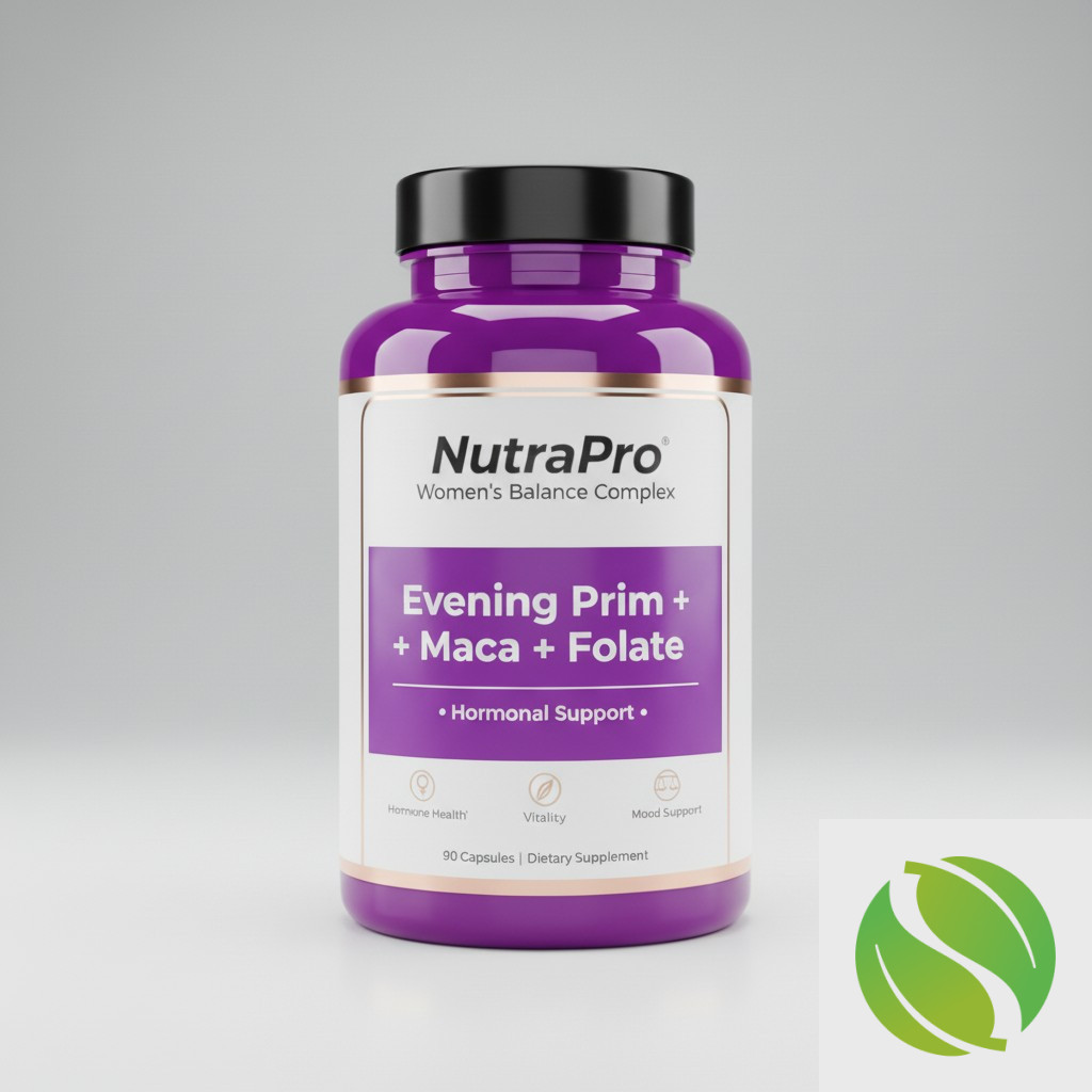 NutraPro Women’s Balance Complex is a premium daily supplement designed to support hormonal balance, overall wellness, and vitality in women. Formulated with Evening Primrose, Maca Root, and Folate, this advanced blend helps regulate menstrual cycles, ease hormonal fluctuations, and enhance energy and mood. Ideal for women navigating stress, menstrual discomfort, or age-related hormonal changes, it also supports reproductive health, skin health, and emotional well-being. Each purple bottle contains 90 easy-to-swallow capsules, providing a convenient one-month supply. Promote balance, vitality, and confidence naturally with NutraPro Women’s Balance Complex.